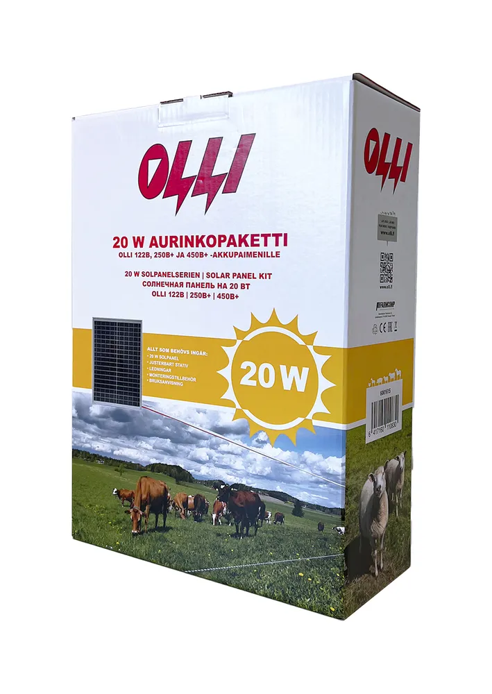Ollin 20 W aurinkopaketti päivittää Olli-paimenet 122B, 250B+ ja 450B+ auringon voimalla latautuvaksi.
