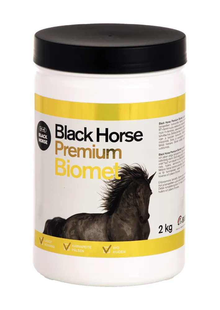 Black Horse Biomet on erityisravinnoksi tarkoitettu täydennysrehu hevosille kavioiden, ihon ja karvapeitteen uudistumisen edistämiseen. Biomet sisältää kavioiden, ihon ja karvapeitteen hyvinvoinnille tärkeitä ravintoaineita.