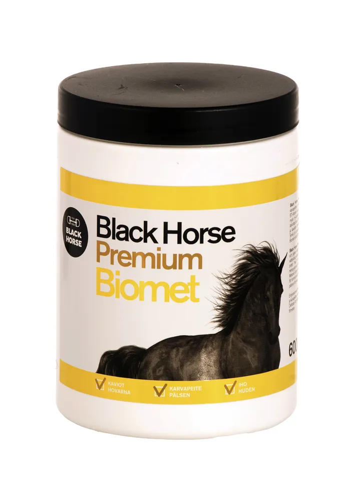 Black Horse Biomet on erityisravinnoksi tarkoitettu täydennysrehu hevosille kavioiden, ihon ja karvapeitteen uudistumisen edistämiseen. Biomet sisältää kavioiden, ihon ja karvapeitteen hyvinvoinnille tärkeitä ravintoaineita.