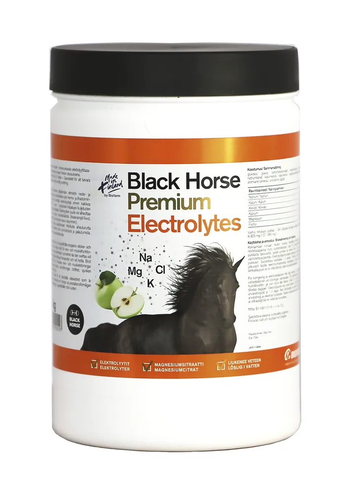 Black Horse Premium Electrolytes sopii runsaasti hikoileville hevosille. Runsaan hikoilun myötä hevonen menettää näitä elimistön toiminnan kannalta tärkeitä kivennäisaineita. Kovassa rasituksessa hevonen hikoilee jopa 15–20 l/tunti. Hien mukana elimistöstä poistuu suuria määriä kivennäisiä, joiden puute ilmenee ennen kaikkea lihasten ja hermoston toimintahäiriönä. Elektrolyyttien puutteesta johtuva oireilu näkyy mm. lihaskramppeina, hermostohäiriöinä, lihaskipuina ja väsymisenä. Pahimmassa tapauksessa seurauksena voi olla jopa lämpöhalvaus.