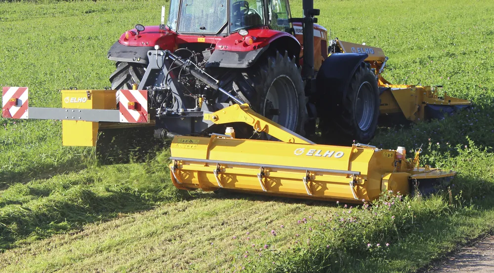 Elho NM 3200 SF -niittomurskaimen vastapainon tilalle voi asentaa toisen 3,2 metrin niittomurskaimen, jolla työleveys kasvaa etukoneen kanssa jopa 9 metriin. SideFlow -ruuvikuljettimen ansiosta murskain on lyhyt, mikä tuo painospisteen lähelle traktoria.