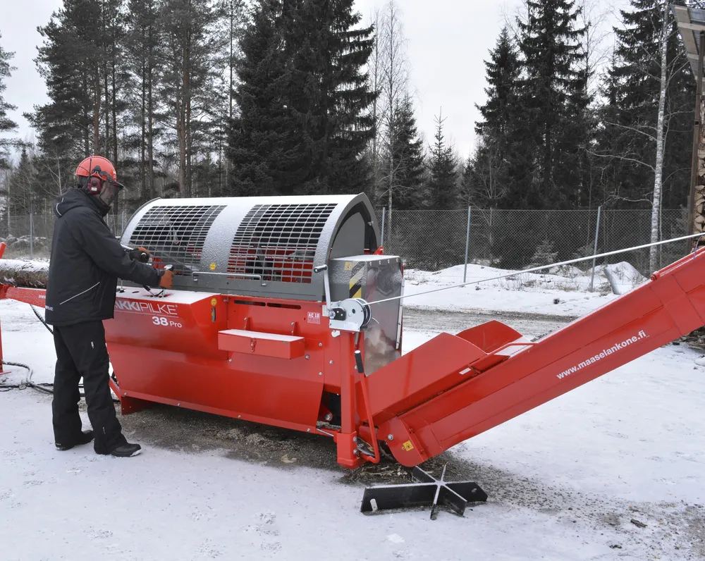 10 tonnin halkaisuvoimalla Hakki Pilke 38 Pro pilkkoo kovimmatkin halkoo kovimmat puulajit halkaisusyklin ollessa vain 3 sekuntia. Uuden ergonomisen HakkiCut™ sahauskäyttöliittymän avulla katkaisu tapahtuu joystickin nappia painamalla. Katkaisulaipan laskunopeus muuntuu automaattisesti vastuksen mukaan tehden sahauksesta erittäin tehokkaan ja nopean. Patentoitu AC10 automaattinen ketjunkiristin pitää teräketjun aina optimaalisella oikealla kireydellä tehostaen sahausta ja pidentäen ketjun ja laipan käyttöikää merkittävästi. Sahauksen ja katkaisun lisäksi joystickillä säädetään halkaisuterän korkeutta ja ohjataan koneen syöttökuljetinta.