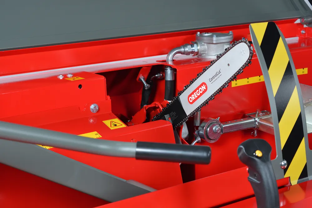 Sahauksen ja halkaisun sähköinen ohjaus vain kahdella napilla. Samalla joystickillä säädetään halkaisuterän korkeutta ja ohjataan koneen syöttökuljetinta. Koneen toimintojen ohjaus helppokäyttöisellä ja ergonomisella käyttöpaneelilla.