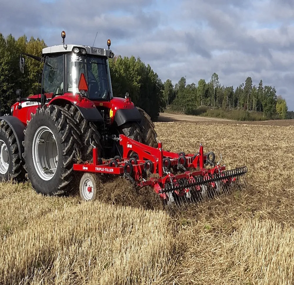 Tripple Tiller Airy kultivaattori on varustettu 35x35mm silmukkajousipiikeillä, joilla saadaan työsyvyydeksi 0-20 cm. Vakiona Tripple Tiller Airy on varusteltu käännettävillä ja korkeussäädettävillä kärjillä, jotka sekoittavat maata ja luovat vesitilaa tehokkaasti.