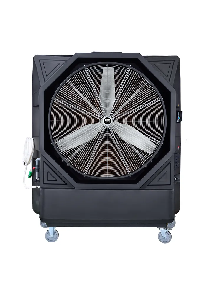 REX48000-ilmanviilennin viilentää ilmaa nopeasti ja erittäin tehokkaasti, ja siinä on suuri ilmakapasiteetti. Ilmanviilentimen avulla lämpötilaa voi laskea jopa 4–12 °C, kun ympäröivän ilman lämpötila on yli 20 °C.