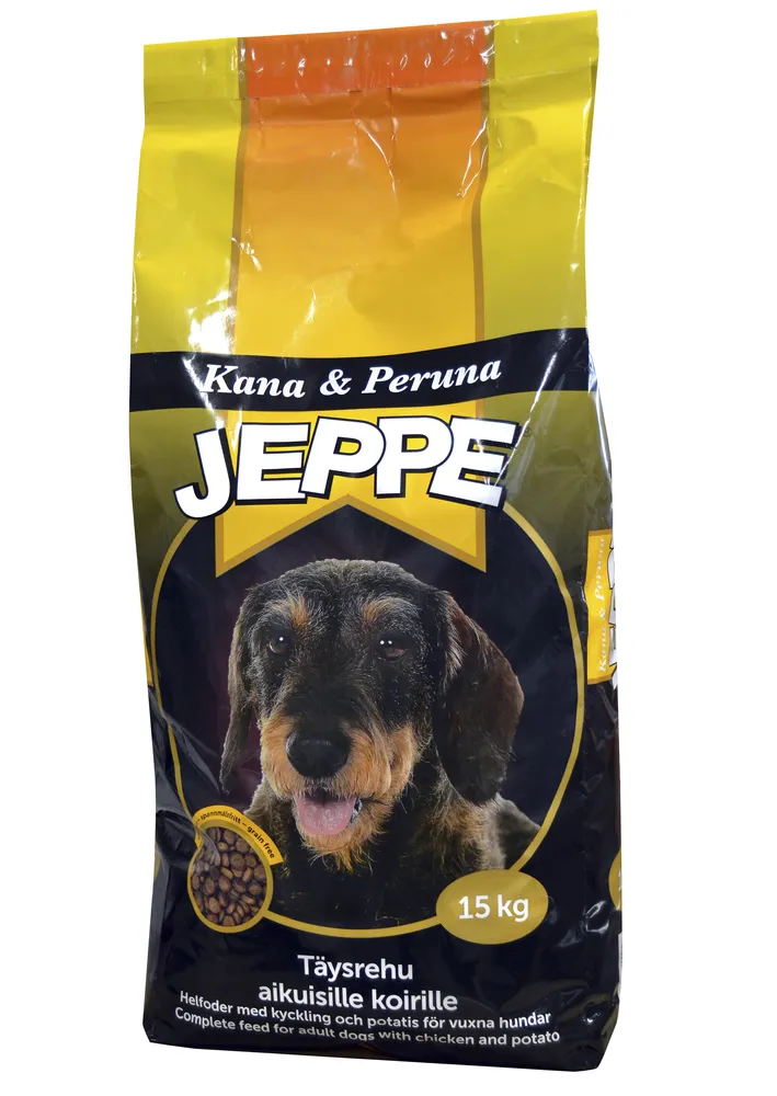 Jeppe Kana & Peruna on viljaton täysrehu-vaihtoehto aikuiselle koiralle. Kana & Peruna on valmistettu korkealaatuisista raaka-aineista ja se sisältää kananlihasta peräisin olevaa laadukasta valkuaista sekä hyvin sulavaa rasvaa. Koostumuksensa ansiosta se sopii myös herkille koirille, joilla on ruokinnan suhteen erityistarpeita.