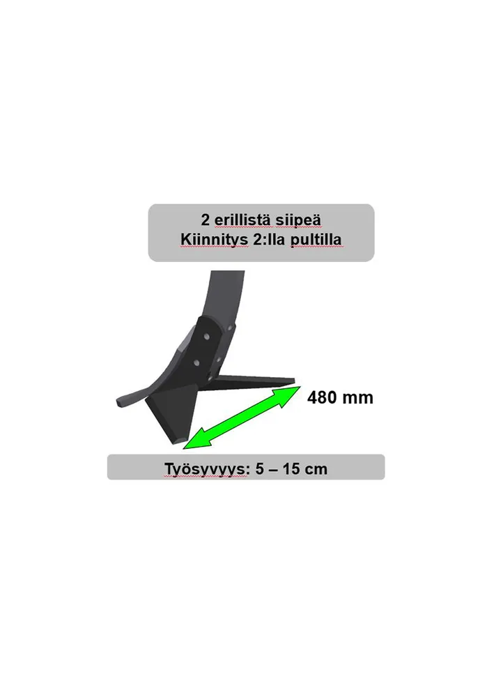 Piikkeihin on saatavilla 480 mm:n levyiset kaksipuoliset siivet ja 80 mm:n levyiset keskiterät. Siivet on tarkoitettu tehokkaaseen 5–15 cm:n pintamuokkaukseen. Keskiterien avulla saavutetaan syvempi, 15–35 cm:n muokkaussyvyys.
