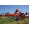 KUHN GA 14231 on varustettu automaattisella, elektronisesti ohjatulla hydraulisella etummaisten roottoreiden jousituksella, joka varmistaa vakaan ja tasaisen työskentelyn kaikissa olosuhteissa. Järjestelmä ylläpitää automaattisesti optimaalista maapainetta riippumatta valitusta työleveydestä, mikä parantaa koneen maanseurantaa ja suojaa kasvustoa. Kuljettaja voi kuitenkin tarvittaessa säätää painetta manuaalisesti esimerkiksi erittäin pehmeillä alueilla, jolloin koneen toiminta sopeutuu tarkasti olosuhteisiin ja maaperän kuormitus pysyy hallittuna. Lisävarusteena vastaava hydraulinen jousitus on saatavilla myös taaempiin roottoreihin.