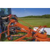 GA 3901 karhottaa materiaalin koneen oikealle puolelle, mikä parantaa työskentelymukavuutta ja näkyvyyttä kuljettajalle. KUHNin kaksoistaivutetut piikkivarret ja piikkien sisäänpäin kääntyvä asento parantavat kasvimassan virtausta ja vähentävät maan epäpuhtauksien kulkeutumista rehun sekaan.