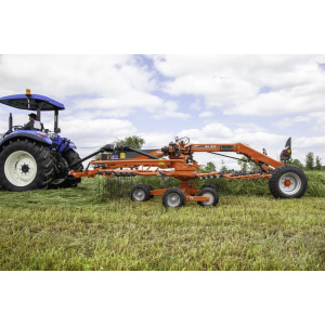KUHN GA 9531+ tarjoaa erinomaista käyttömukavuutta hydraulisen työleveyden säädön ja helpon karhotuskorkeuden säädön avulla. Vakiovarusteena on mekaaninen säätö, ja hydraulinen on saatavilla lisävarusteena. Vakiovarusteena on KGA 04C -ohjainyksikkö, joka mahdollistaa työ- ja kuljetusasentojen vaihdon.