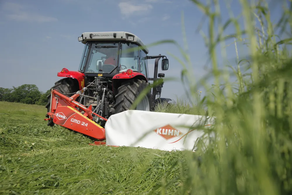Monipuolinen KUHN GMD 24 mukautuu erilaisiin maastoihin ja asiakkaiden tarpeisiin. Teräpalkki on lähellä traktorin pyöriä ja näin seuraa hyvin maanpintaa. Niittokone on päätyripusteinen ja se pääsee niveltymään +35/-15 astetta. Niittokoneessa on jousikevennys ja päistenosto tapahtuu traktorin nostolaitteella. Kuljetusasentoon kone saadaan niittokoneen hydraulisylinterin avulla.