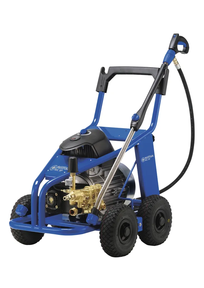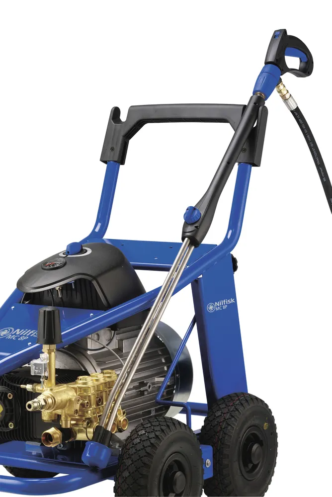 Nilfisk MC 8P-180/2100 on helppokäyttöinen pesuri, sitä on helppo liikutella ja mukava käyttää. Mallista riippuen on työpaine jopa 180 bar ja vesimäärä 2100-2500 l/h. Tämä tarkoittaa että jopa pinttynyt tai suuri määrä irtonaista likaa voidaan pestä pois helposti. Työaika vähentyy merkittävästi, jolloin siivouskulut pienevät.