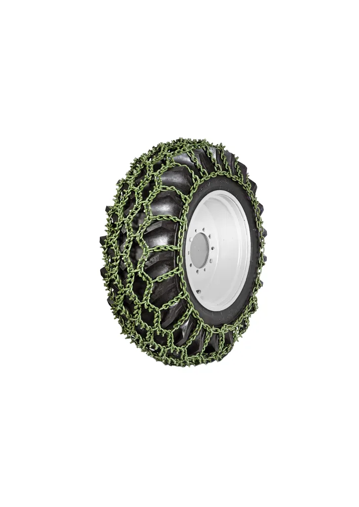 Kierretystä 11 mm:n kettingistä valmistettu tiheä 2-ruutuinen kuvio antaa erinomaisen renkaan suojan. Halkaisijaltaan 12 mm:n pystynastat takaavat pidon vaikeissakin olosuhteissa. Ketjua voidaan myös käyttää raskaammissa metsäkoneissa.