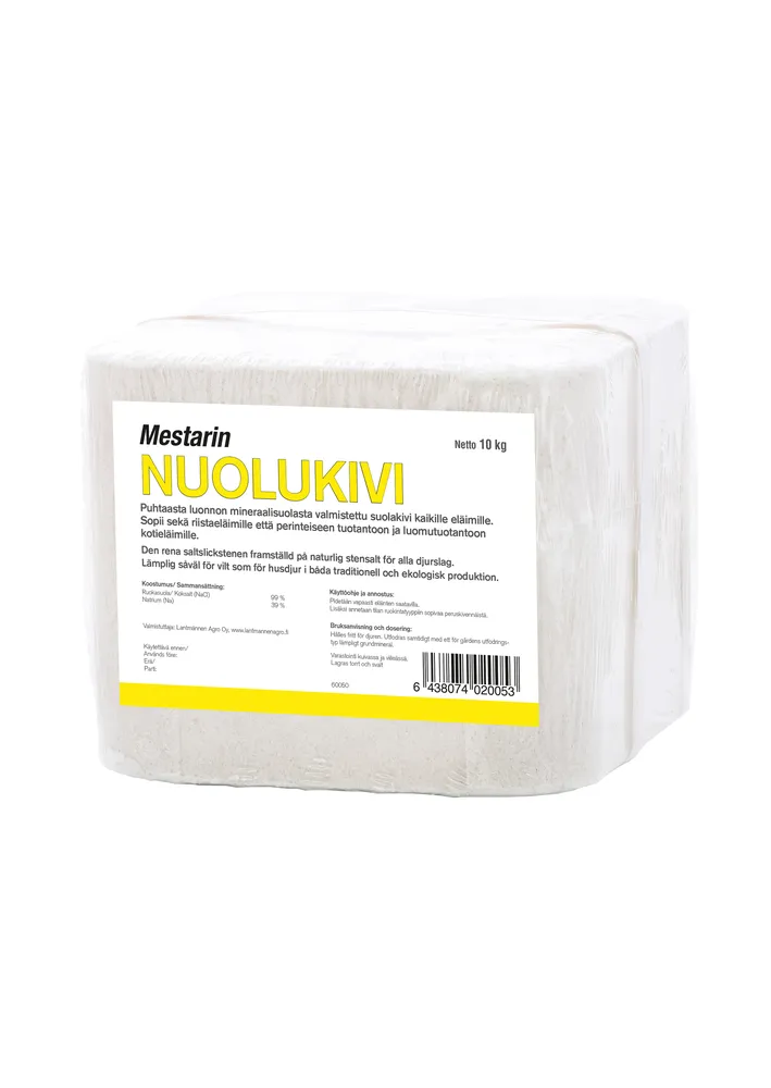 Mestarin nuolukivi on puhtaasta luonnon mineraalisuolasta valmistettu suolakivi kaikille eläimille.