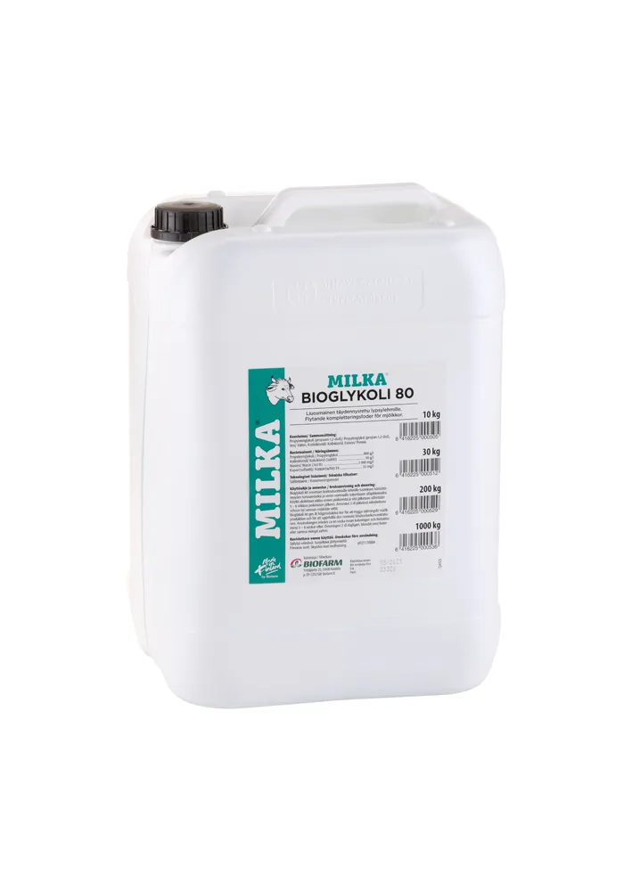 Bioglykoli 80 annetaan korkeatuottoisille lehmille noin viikko ennen poikimista ja 6 viikkoa poikimisen jälkeen. 2 dl päivässä rehuun tai veteen sekoitettuna.