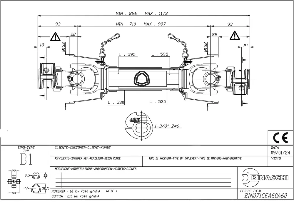 Traktorin pää: 1-3/8″ 6-ura, nappilukitus