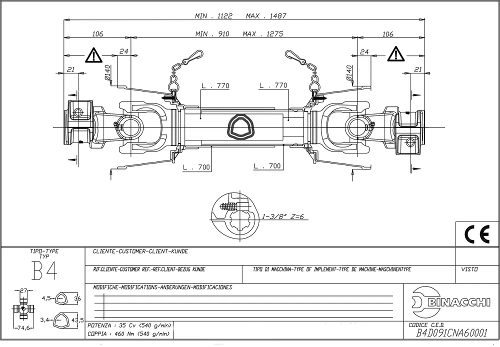 Traktorin pää: 1-3/8″ 6-ura, nappilukitus