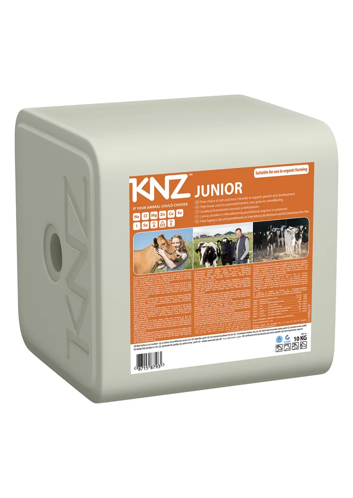 KNZ™ Junior nuolukivi 10 kg on erityisesti nuorten, kasvavien eläinten tarpeisiin suunniteltu nuolukivi. Sisältää esimerkiksi magnesiumia, kuparia, rautaa, seleeniä ja ADE-vitamiineja.