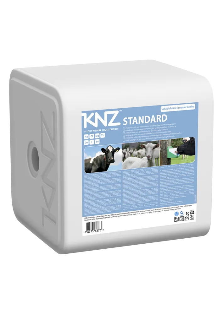 KNZ™ Standard nuolukivi 10 kg on perinteistä suolakiveä monipuolisempi vaihtoehto täydentämään eläinten suolan sekä kivennäis- ja hivenaineiden saantia.