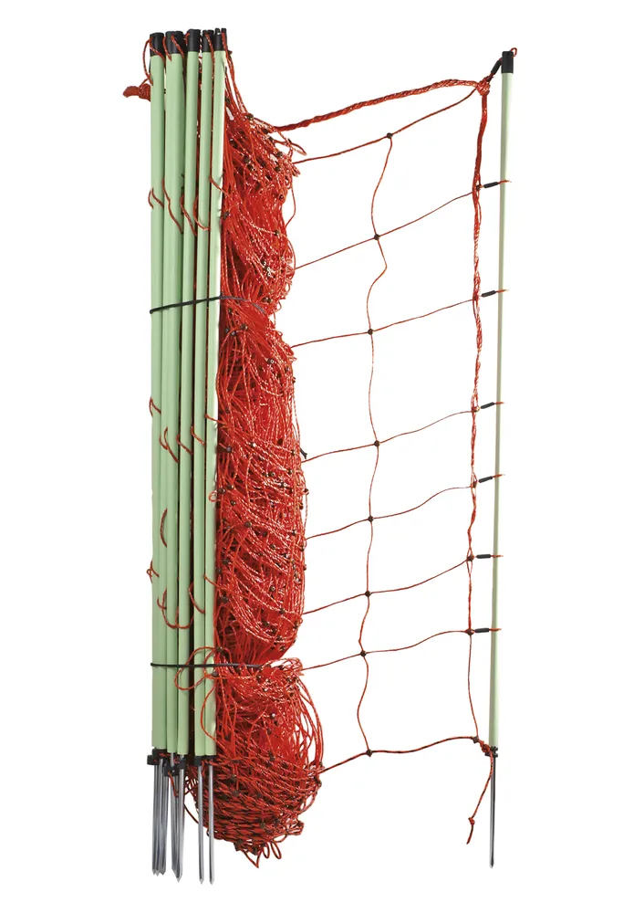 Lammasverkko, jonka voi sähköistää. Verkko kestävää, UV-suojattua polyeteeniä. Korkeus 90 cm, rullassa 50 m. Mukana 14 kpl teräskärkisiä lasikuitupylväitä. Verkkoja voidaan liittää yhteen suuremman aitauksen rakentamiseksi.