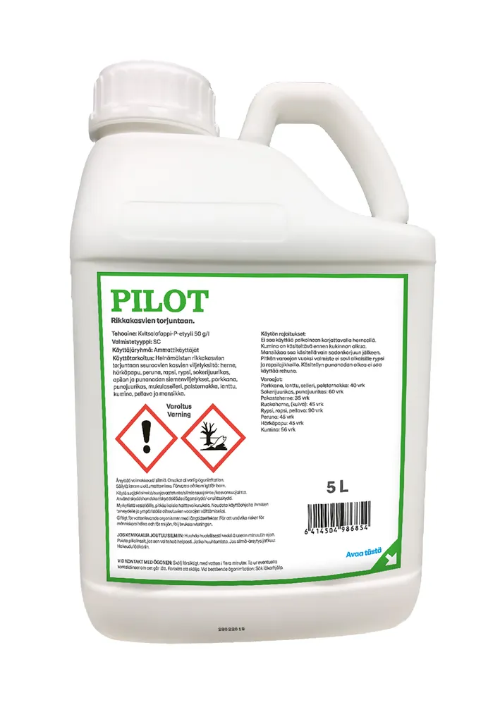 Pilot on valikoiva torjunta-aine heinämäisten rikkakasvien torjuntaan erikoiskasveilta. Hellävarainen viljelykasveille. Nopea vaikutus. Tuote soveltuu käytettäväksi myös pohjavesialueilla. Nyt myös kuminan satovuosille.