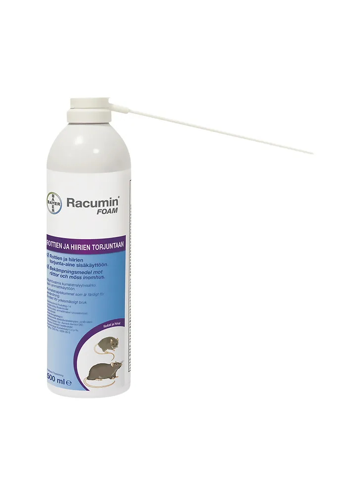 Racumin Foam -vaahto on markkinoiden ainut vaihtoehto tavallisille syöteille toimintatapansa ansiosta. Se toimii silloinkin, kun jyrsijät eivät jostain syystä syö normaaleja syöttejä. Vaahto sisältää karvasainetta, joka ehkäisee muita kuin kohde-eläimiä syömästä sitä.