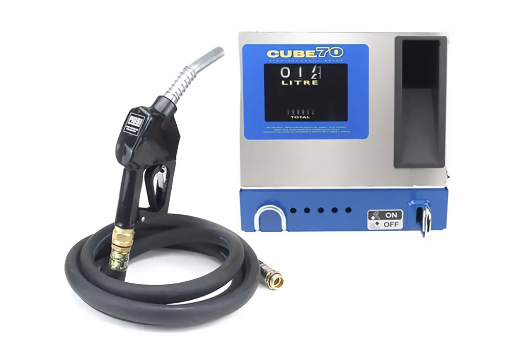 Sähköinen tankkauspumppu, 230 V. Varustettu mittarilla ja automaattisella pistoolilla. Letkun pituus 4 m, kapasiteetti 70 l/min.