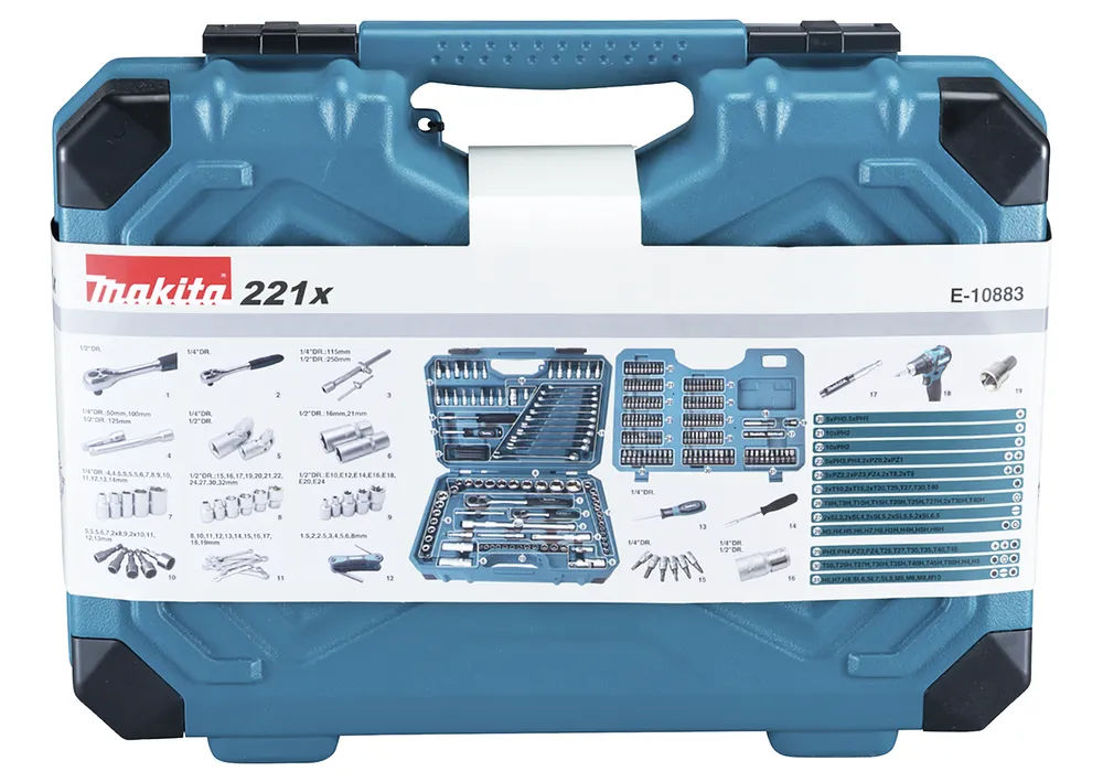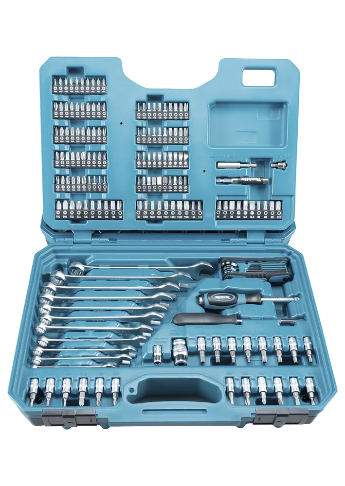 Mukana 2 kpl magneettipitimiä sekä 2 kpl magneettisia ruuvinohjaimia. Sarjaan kuuluvat hylsyt 4–32 mm, torx-hylsyt 4–24 mm, voimahylsyt 16 ja 19 mm sekä kuusiohylsyt 5–13 mm. Lisäksi sarjassa on jatkovarsia räiköille, hylsyadapterit, nivelkappale, ruuvinväännin ruuvauskärjille sekä kuusiokoloavaimet 1,5–8 mm.